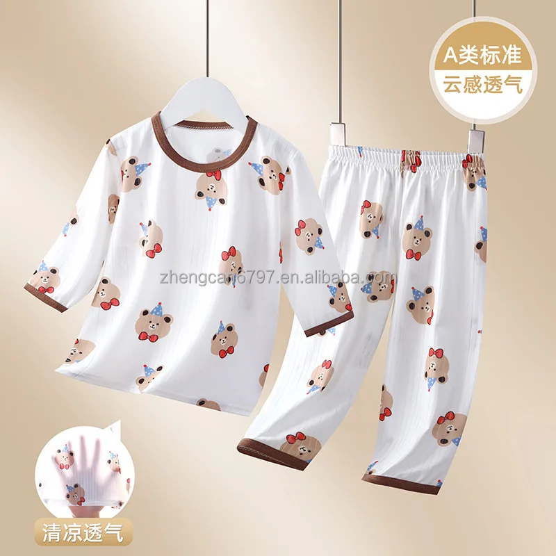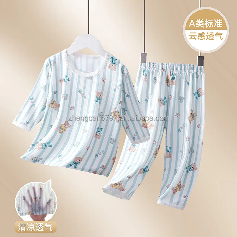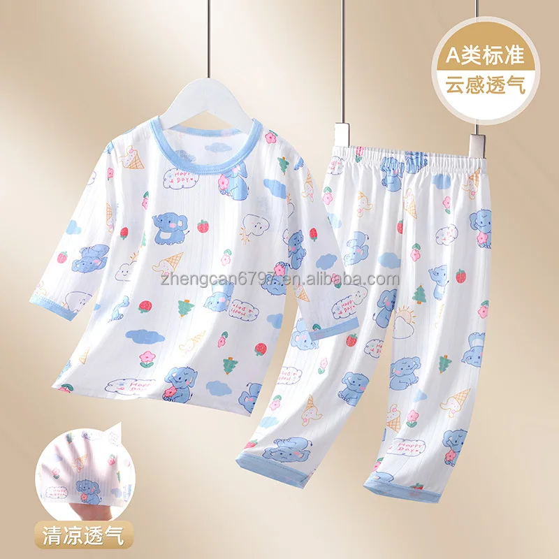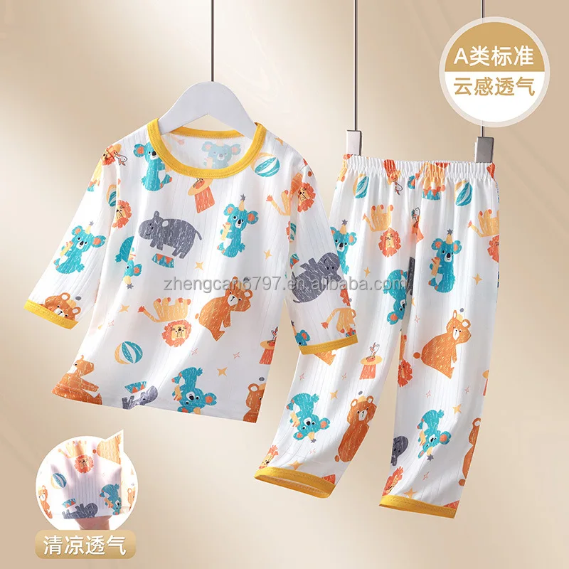 New Baby Air Conditioning Clothing Set Cartoon Children's Thin Set Boy's and Girl's Summer Sleepwear Two Piece Set Kids